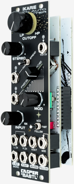 This module results from a collaboration between Václav Peloušek of Bastl Instruments and Peter Edwards of Casperelectronics. While Edwards' obsessive attention to detail gave this filter a uniquely balanced resonance and envelope response, the expertise of Peloušek delivered a one-hand user experience filter with a distinctive control scheme at a minimal footprint.