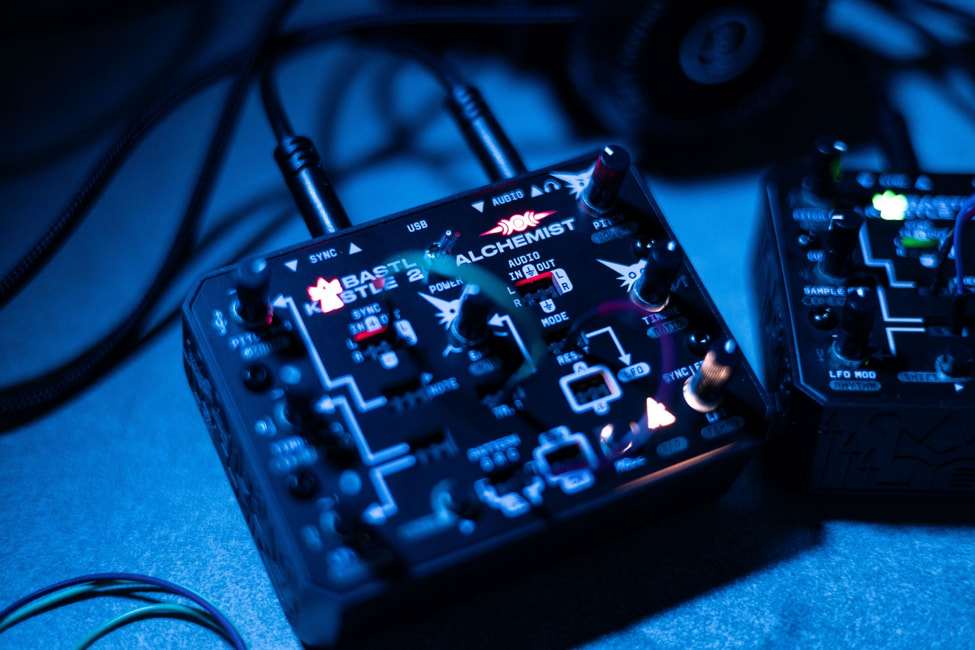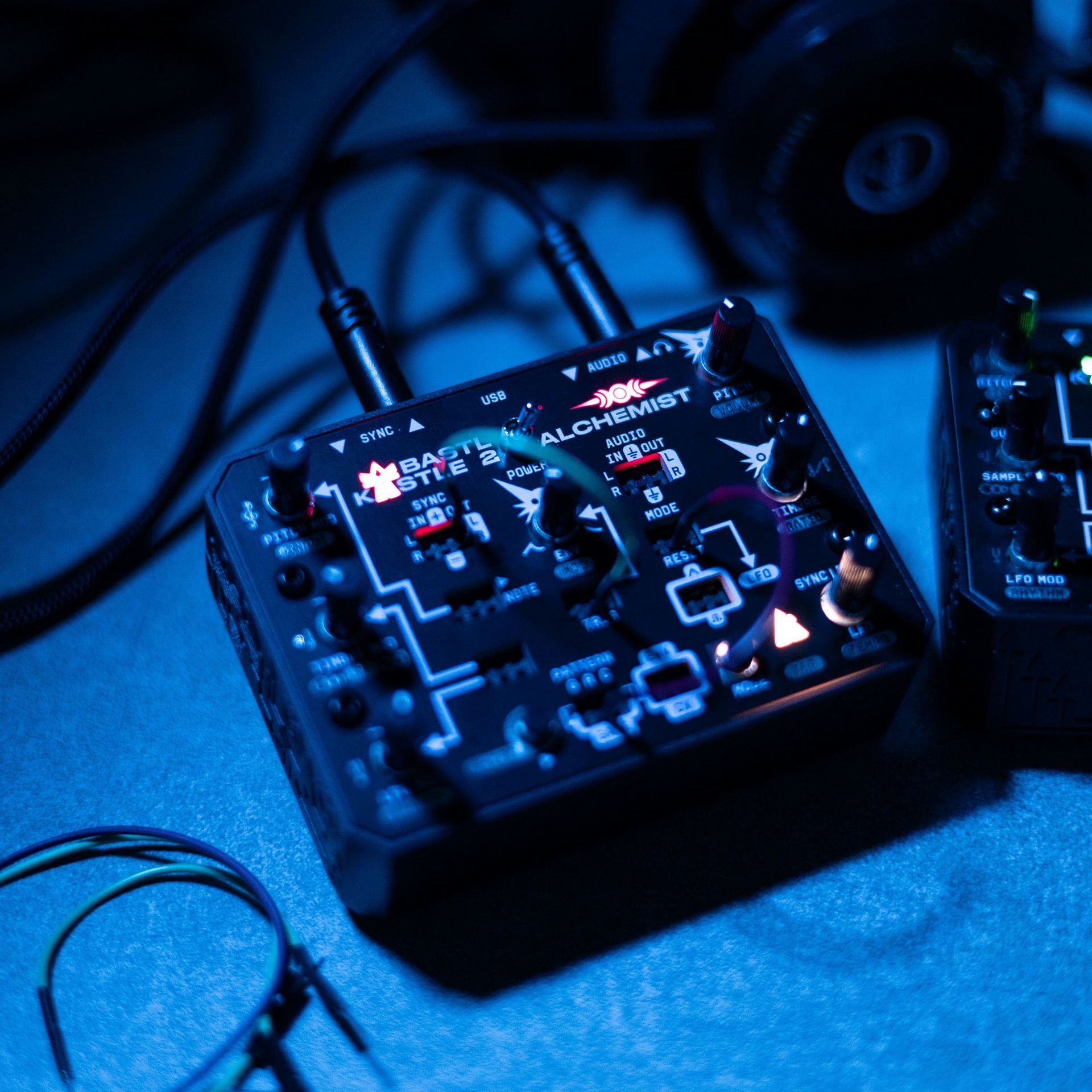 The Kastle 2 Alchemist is a compact, portable instrument that runs on 3 AA batteries or USB-C, so it can inspire you anywhere, anytime. It loves to jam with your other portable gear—sync it with the sync in/out ports, and use the audio input to mix external signals with the Alchemist’s output or run them through its built-in effects.