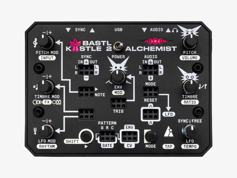 Kastle 2 Alchemist is a patchable hybrid-synthesis based instrument that empowers you in discovering melodies and even harmonies despite being monophonic. Patch programmable sequencing via the control signals into the two PITCH MOD inputs opens up a world of melodic inspiration beyond classic arpeggios while staying in your preferred SCALE.